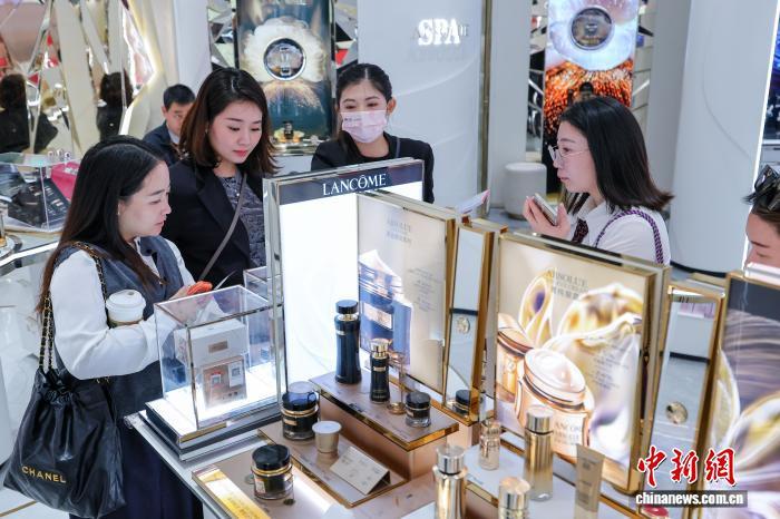 1月18日,顾客在cdf海口国际免税城选购化妆品。中新社记者骆云飞 摄