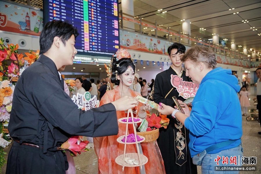 身着汉服、发间点缀木棉的“木棉仙子”穿行于美兰机场到达大厅,将一支支鲜红的木棉及木棉花纹书签递至初抵海南的旅客手中。“落地就收到木棉花,太浪漫了!”从北京飞抵海口的李女士惊喜驻足,当即改变行程,“听木棉仙子说昌化江畔的木棉正盛,我们临时决定先去昌江住两晚,看看那片火红的花海。”