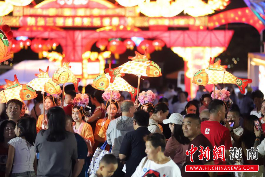 2月17日,三亚丝路欢乐世界景区内,新春灯会营造出浓浓年味。(闻蓉 供图)