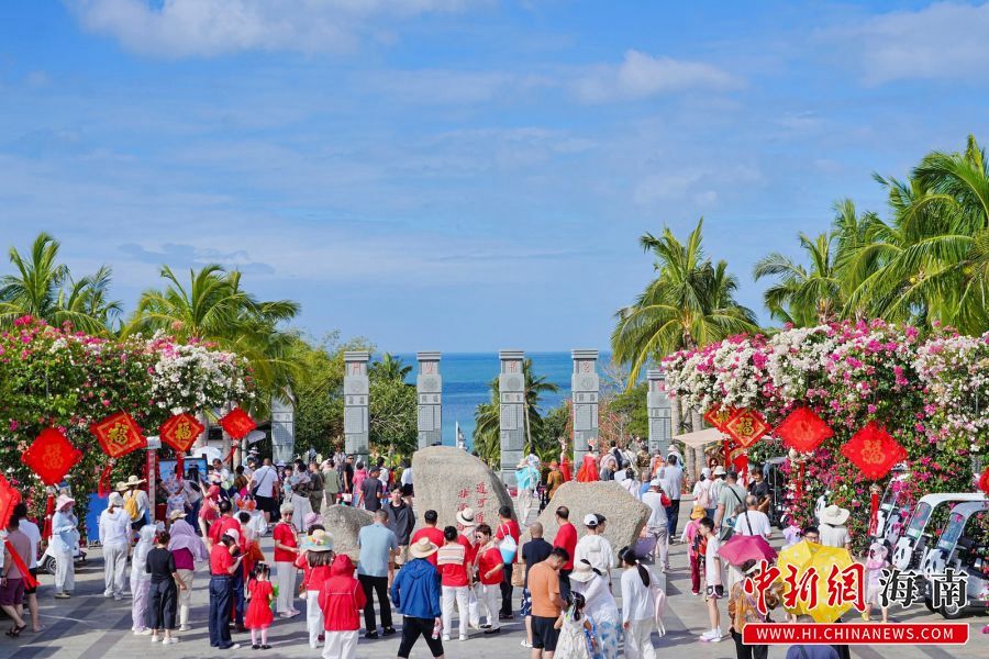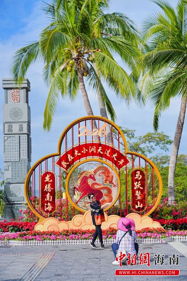 中新网海南新闻2月18日电(金鑫)“早就计划来三亚过春节,这里不仅气候宜人,年味也非常浓。”2月17日,黑龙江游客王女士带着孩子,在三亚大小洞天旅游区“金马迎新”主题景观前驻足打卡,开启新春游园之旅。