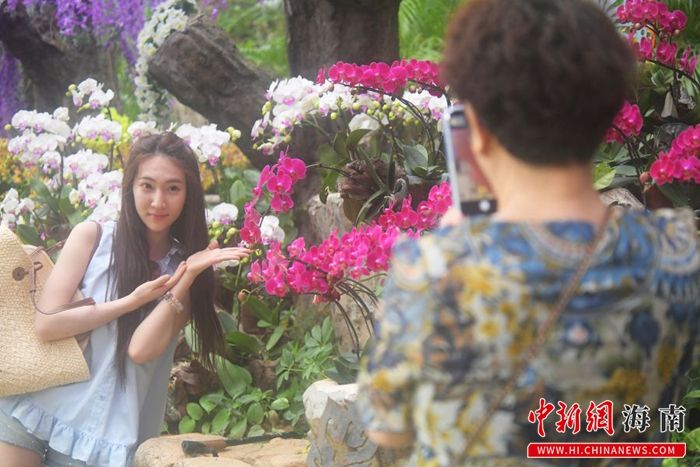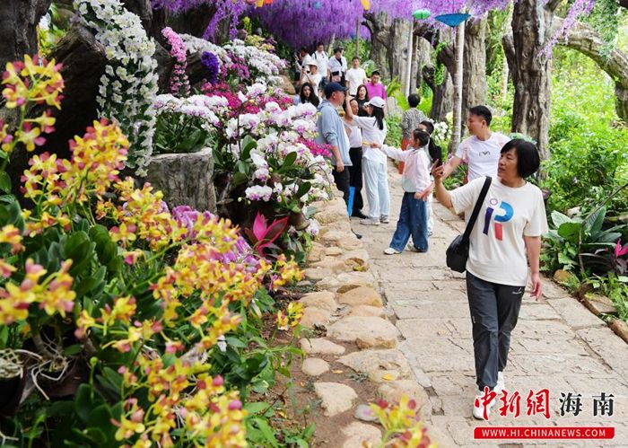 2月19日,海南三亚,游客在亚龙湾热带天堂森林旅游区的兰花谷中游玩。黄庆优 摄