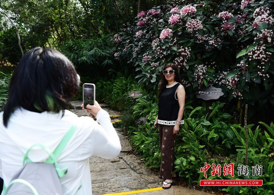 2月27日,游客在三亚亚龙湾热带天堂森林旅游区赏花打卡。黄庆优 摄