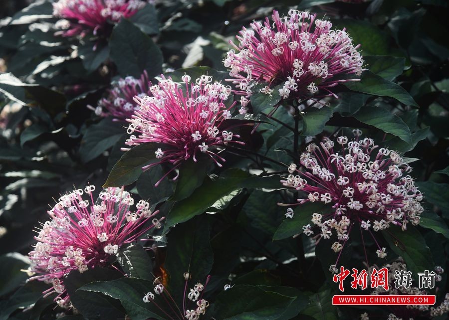 2月27日,在三亚亚龙湾热带天堂森林旅游区中盛开的烟火树花。黄庆优 摄