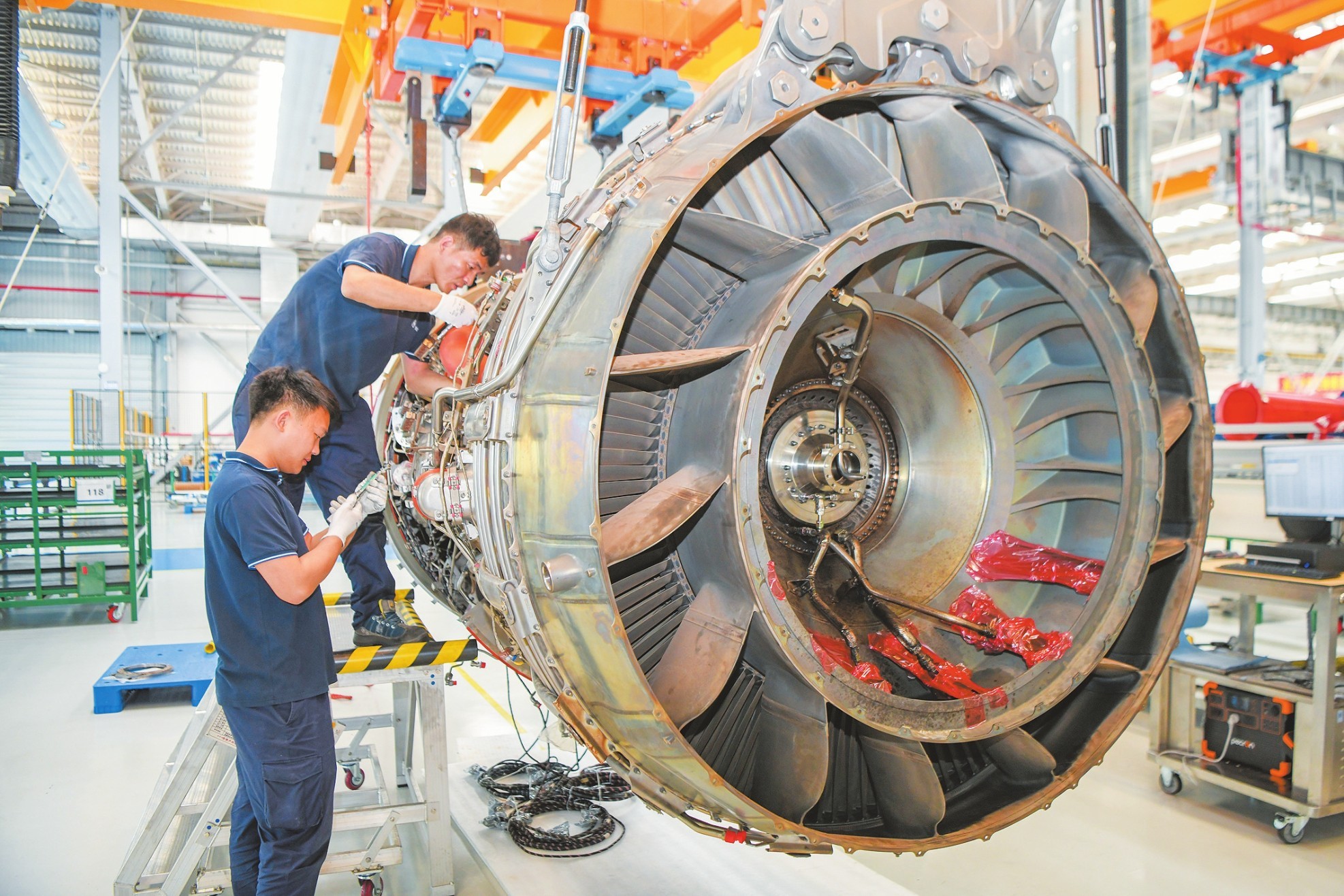 在海口美兰空港吉耐斯航空发动机维修工程有限公司,工作人员对航空发动机及零部件进行检修。本报记者 苏弼坤 摄