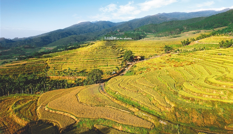 五指山牙胡梯田:稻浪翻滚庆丰收
