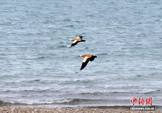 黑颈鹤冬日悠然“打卡”西藏日喀则