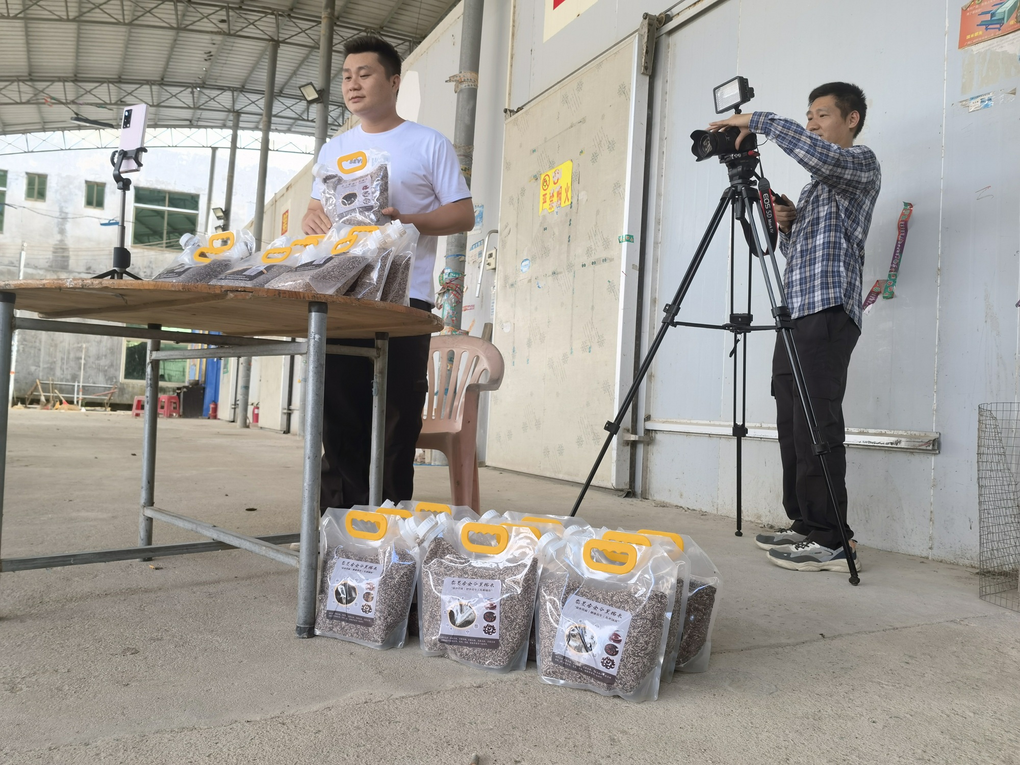 陵水光坡镇武山村:线上直播+线下联动热销黑糯米