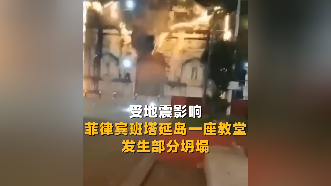 受地震影响 菲律宾班塔延岛一座教堂发生部分坍塌