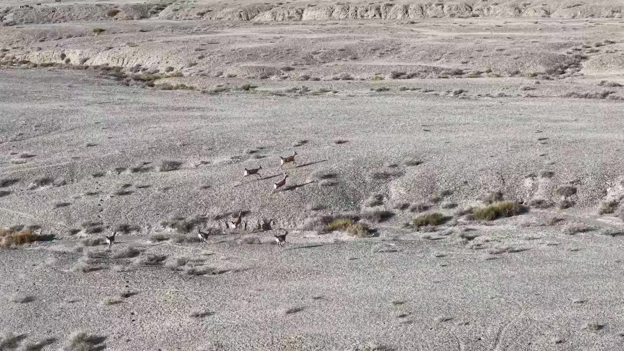 无人机捕捉到新疆和硕成群鹅喉羚下山觅食