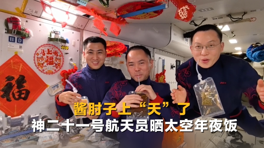 酱肘子上“天”了!神二十一号航天员晒太空年夜饭