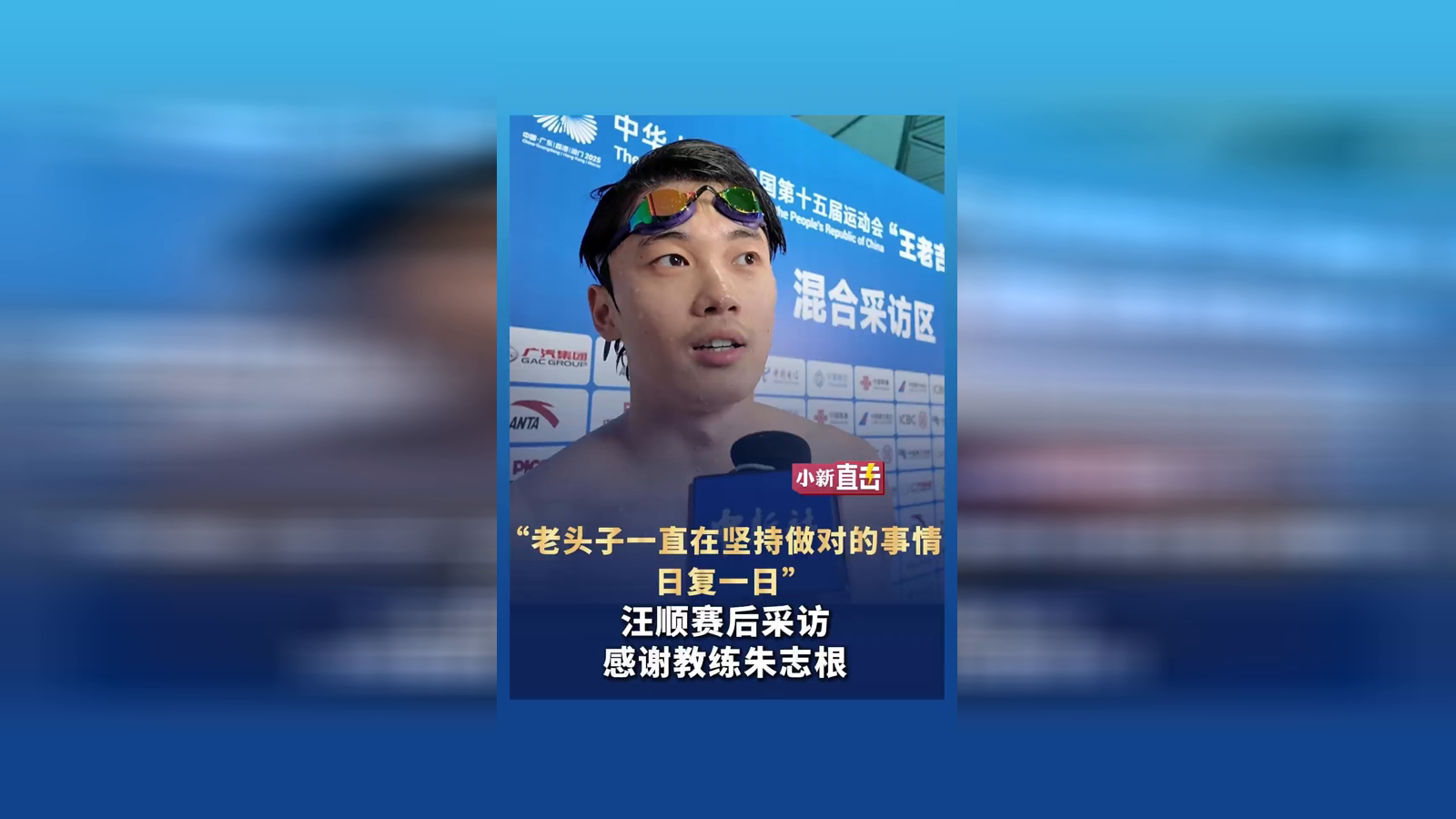 汪顺赛后采访 感谢教练朱志根
