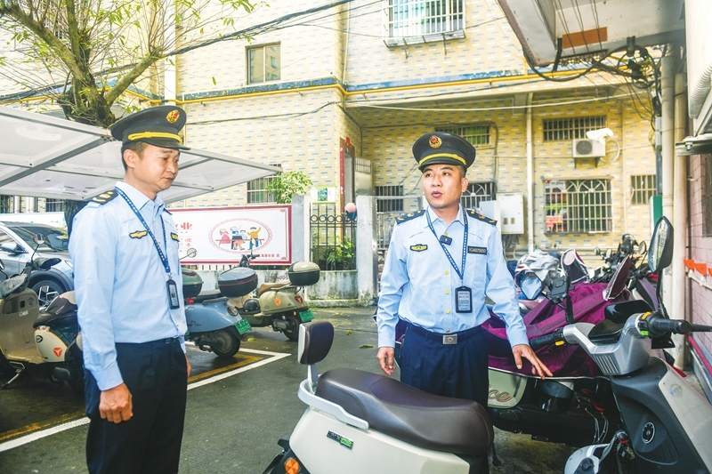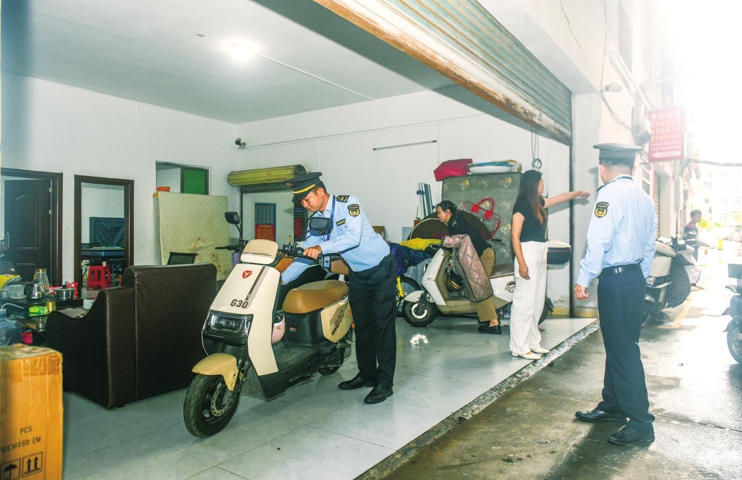 执法人员开展电动车停放规范与安全隐患专项执法检查。李鑫 摄