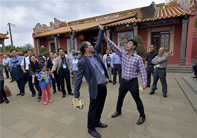 五位嘉宾:杨思涛(澄迈县委书记)、邹统钎(北京第二外国语学院校长助理)、刘选生(中国中医科学院科技合作中心秘书长)、高进(罗马尼亚《欧洲侨报》社长、医学博士)、赵沨(富力地产集团决策委员会委员兼海南公司董事长)