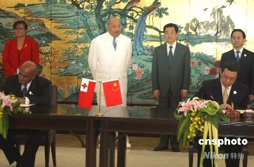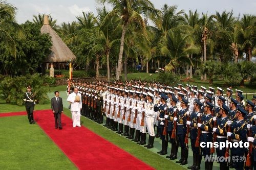 中新社三亚四月十日电(记者 翁阳)中国国家主席胡锦涛十日下午在海南三亚喜来登酒店瑶池花园,为应邀访华的汤加国王图普五世举行了一场特殊且盛大的欢迎仪式。