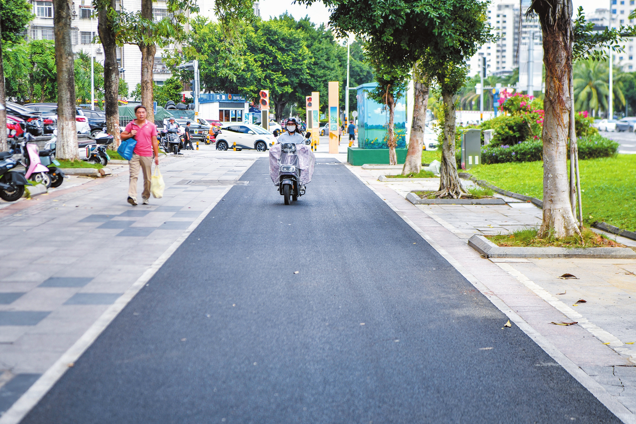 海口龙昆南“非机动车道+人行道”试点改造获点赞