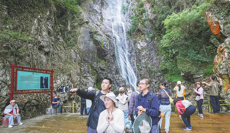 飞瀑迎春客满山!临高古银瀑布春节假期游人如织