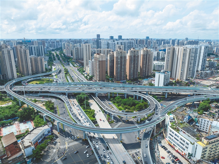 10月1日上午10时,海口海秀快速路龙昆南匝道完善工程关键性工程SW匝道(龙昆南路上海秀快速路)建成通车,龙昆南立交全互通格局全面形成,可有效提升龙昆南路与海秀快速路之间的交通转换效率。