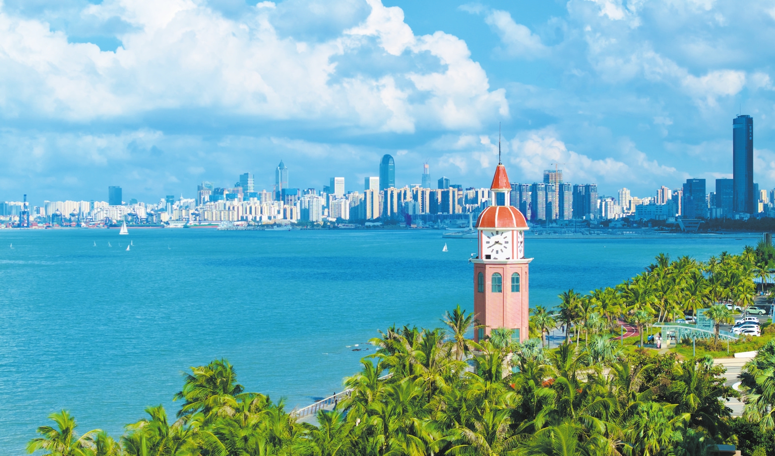 10月14日,海口西海岸风光旖旎,在碧海蓝天的映衬下,尽显海口滨海城市魅力,吸引众多市民和游客前来观光打卡。 本报记者 杨忠凯 摄