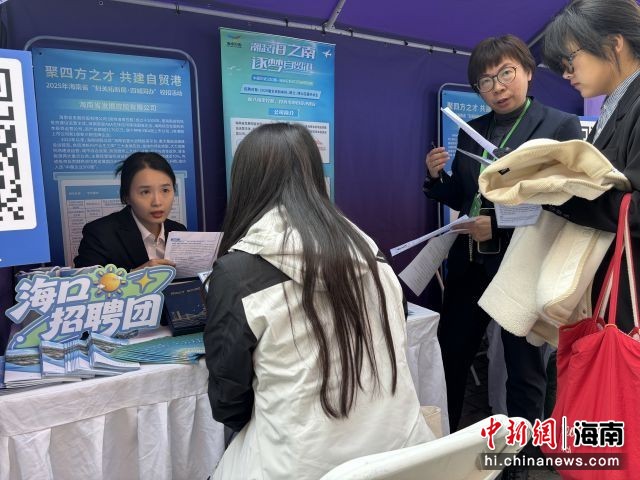 “平时是在海口办公吗?”“都有哪些人才引进政策?”“封关后职业前景会有哪些提升?”……当天上午,海口招聘团的展位前围满咨询和投递简历的学子,交流声、介绍声此起彼伏,求职氛围十分火热,不少学子在活动现场就与企业达成初步就业意向。