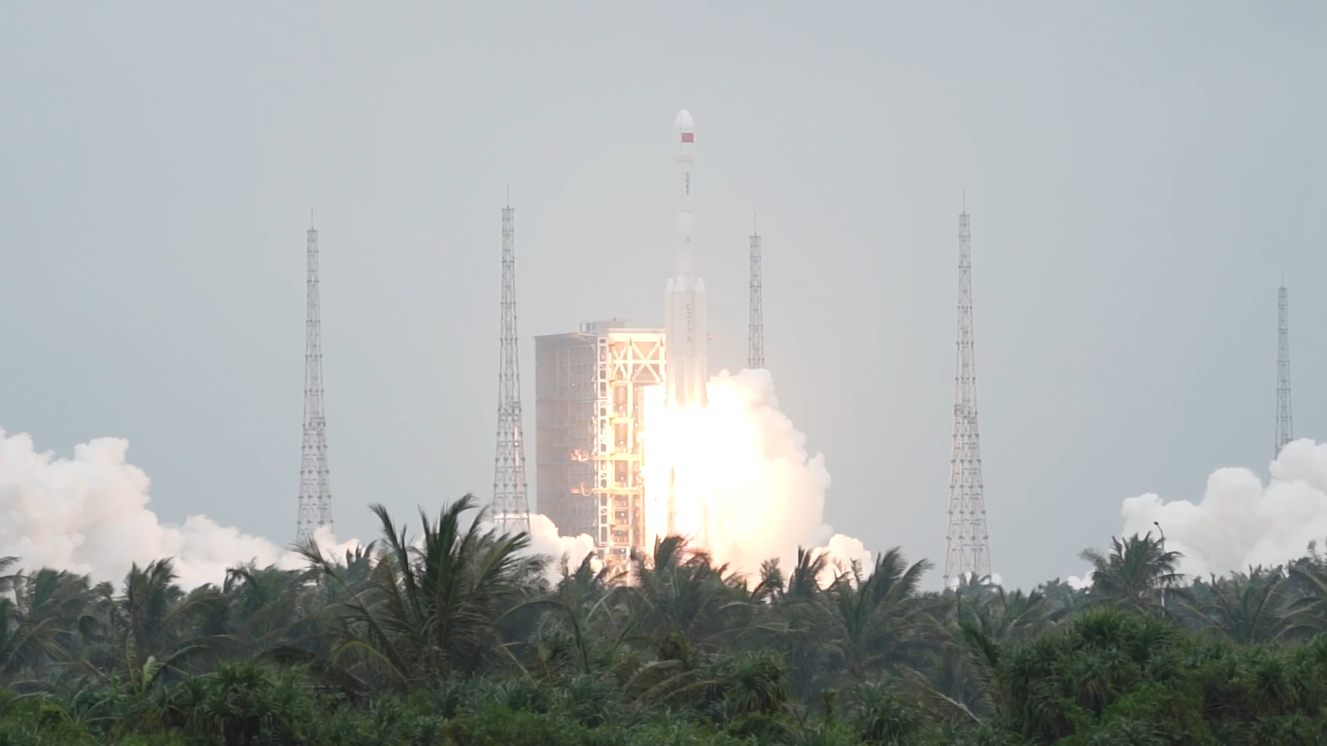 当天9时许,不少游客早早来到文昌市春桃村,与家人朋友一同静候火箭点火。临近发射,天空飘起蒙蒙细雨。