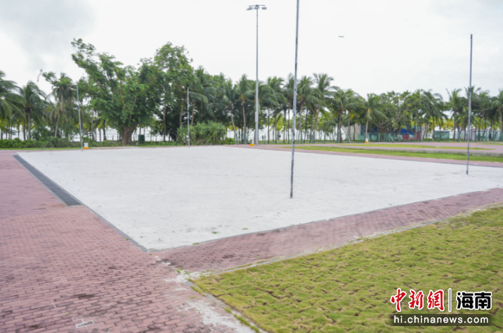 走进位于三亚天涯海角游览区西侧的沙滩排球、沙滩手球、攀岩竞赛项目场馆群,比赛场地及训练场地均已修缮完毕,沙滩排球和沙滩手球技术用沙填充完成,贵宾接待室、运动员休息区等各功能房和基础设施装修一新,园林工人正在修剪草坪和绿化浇水,竞赛场馆已整装待发。