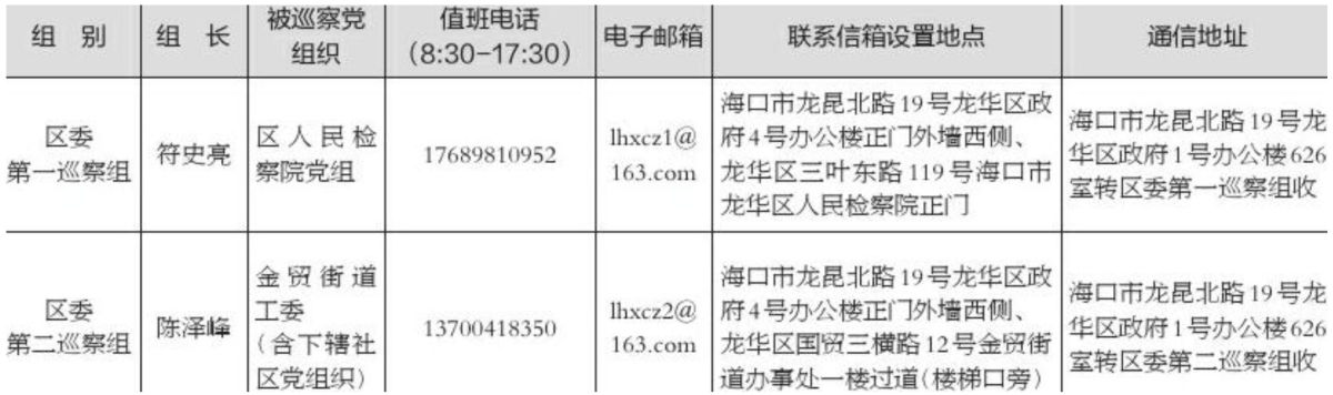 根据区委巡察工作统一部署,八届龙华区委第十一轮巡察对区人民检察院党组、金贸街道工委(含下辖社区党组织)开展常规巡察,并延伸巡察下一级党组织。巡察时间:2025年11月10日至12月24日。巡察组主要受理反映被巡察单位党组织领导班子及其成员、其他区管干部、下一级党组织主要负责人及其他党员干部的问题,重点关于违反政治纪律、组织纪律、廉洁纪律、群众纪律、工作纪律和生活纪律以及巡察整改等方面的问题反映。其他不属于巡察受理范围的信访问题,请按照有关规定到当地信访或有关部门投诉举报。巡察期间设置专门的联系电话、联系信箱等,并开通“码上巡”网上举报平台,广大干部群众可通过来信、来电、来访或者通过“清廉海口”及“海口12345”微信公众号“巡察举报”端口,用手机扫描“码上巡”信访举报二维码,向巡察组反映问题。欢迎广大干部群众反映问题、提供线索,巡察组受理信访时间截至2025年12月19日。