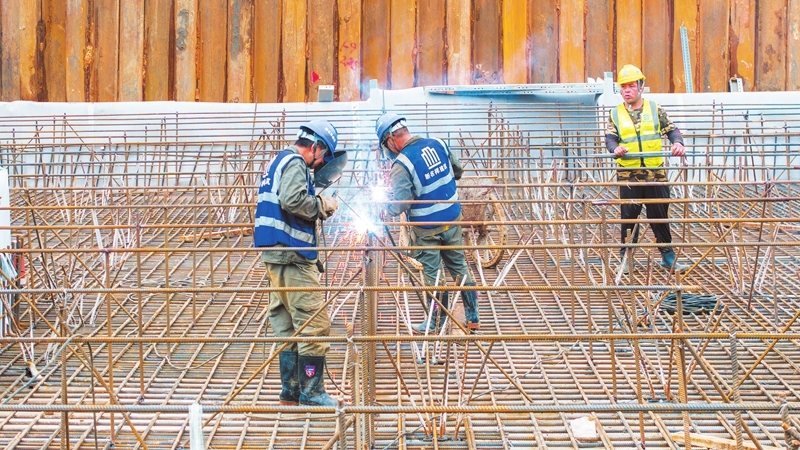 11月5日,海口丁村片区城市更新项目现场,施工人员在焊接钢筋。 本报记者 杨鹤 摄