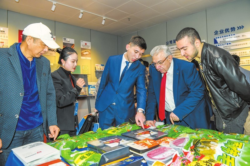 在海南友一家国际贸易集团举行的加工增值免关税项目启动仪式上,各类产品吸引不少客商的关注。 本报记者 康登淋 摄