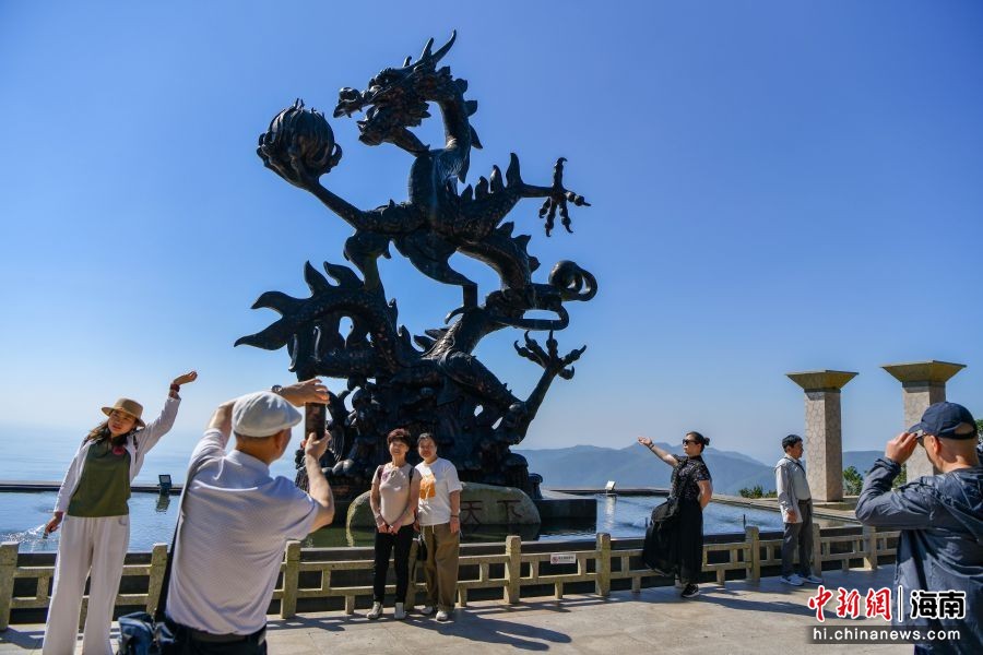 图为在三亚亚龙湾热带天堂森林旅游区龙雕广场,游客拍照打卡。骆云飞 摄