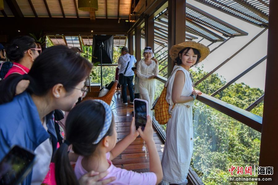 图为在三亚亚龙湾热带天堂森林旅游区,游客拍照打卡。骆云飞 摄