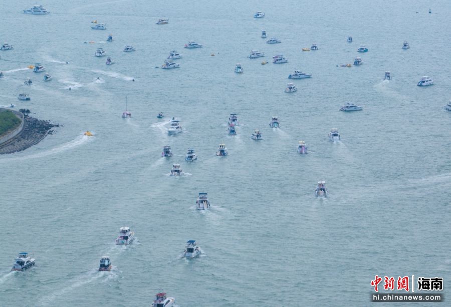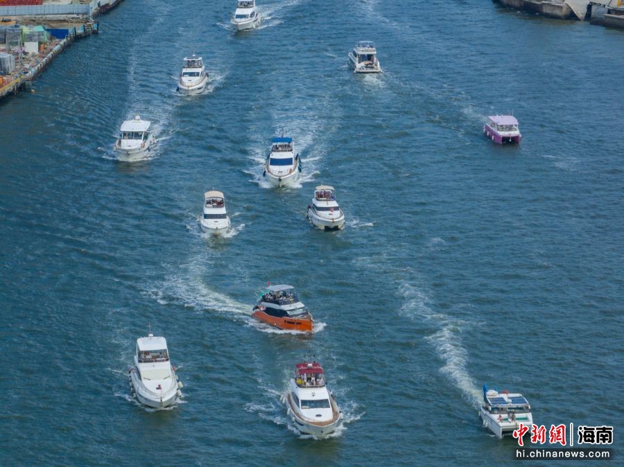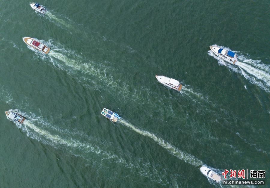 图为航拍出海游玩的游艇有序出港。骆云飞 摄