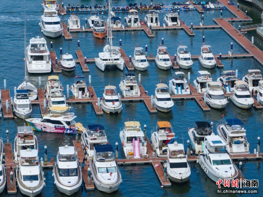 图为航拍在三亚游艇旅游中心码头停泊的游艇。骆云飞 摄