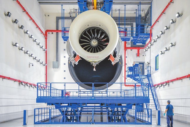 向东看——在海口吉耐斯试车中心,工作人员全神贯注地对一台宽体飞机发动机进行检测。近年来,海口吉耐斯在航空发动机维修领域不断探索前行,为海南航空产业补齐关键一环。