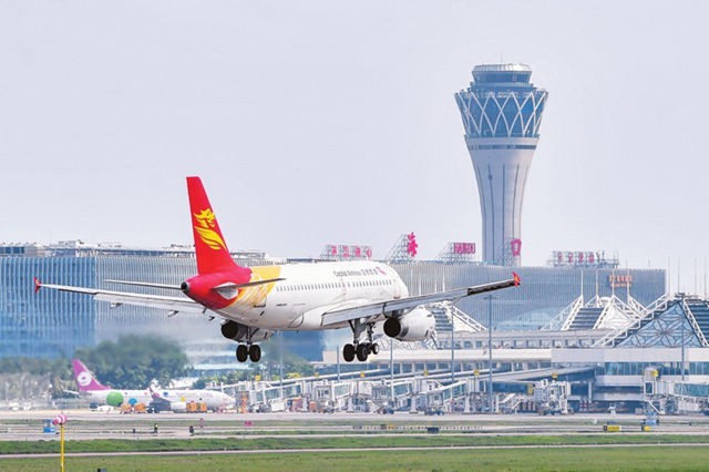 11月16日,一架首都航空的航班在海口美兰国际机场降落。
