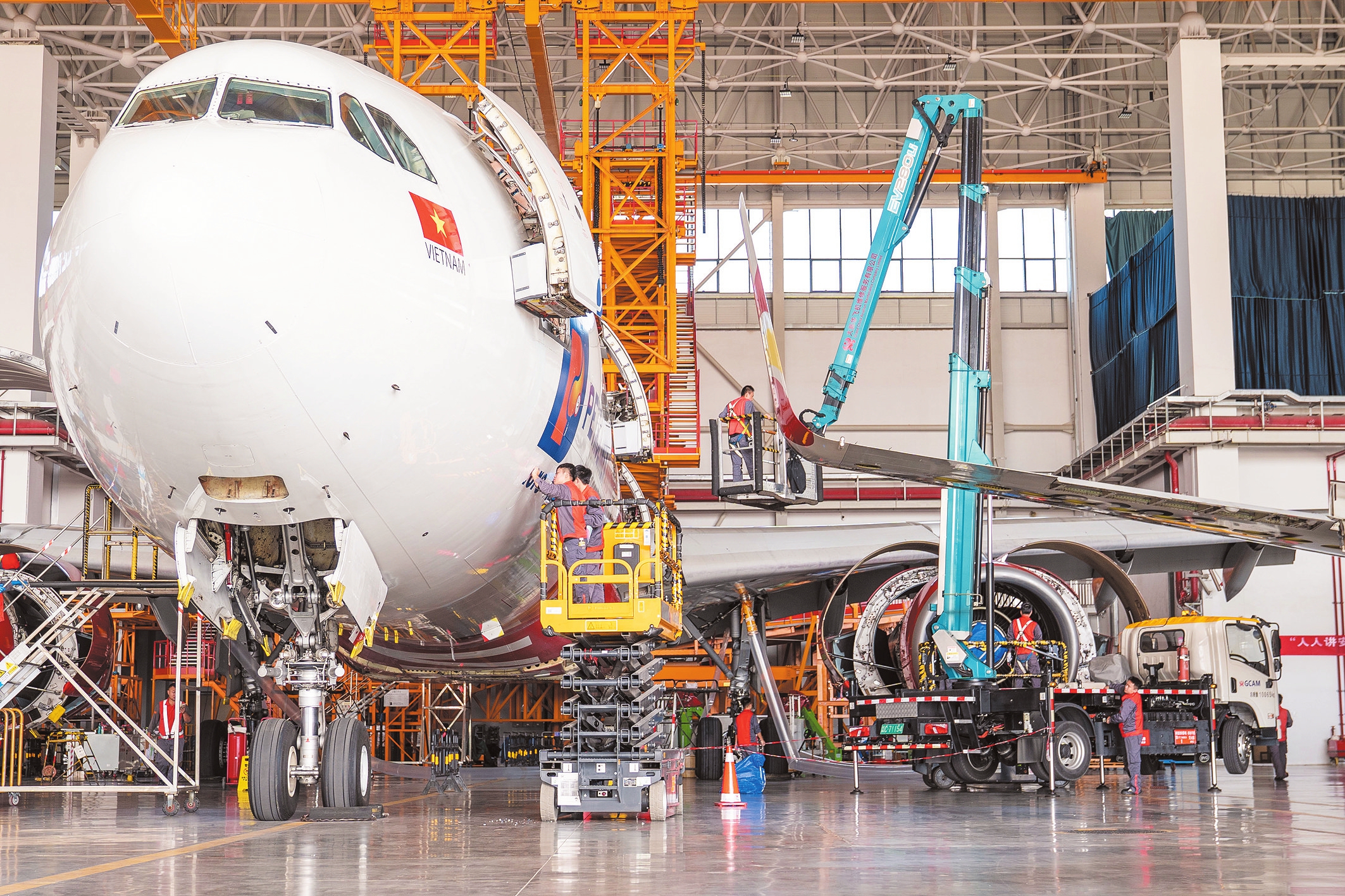 11月21日,海航技术旗下大新华飞机维修服务有限公司的机务维修人员对进境飞机进行检修。海南自贸港封关在即,在位于海口的一站式飞机维修产业基地内,多架进境飞机在接受定检、喷漆等维修服务。据了解,进境飞机在海南可享受维修免缴保证金、暂时进境维修允许内销、维修航材保税等海南自贸港优惠政策。该基地内航空维修企业目前已具备美国、欧盟、泰国、菲律宾、越南、韩国等多个国家和地区航空管理部门颁发的航空维修资质,承接了包括卡塔尔航空、约旦皇家航空、泰亚航空等20多家境外公司的进境飞机维修业务。