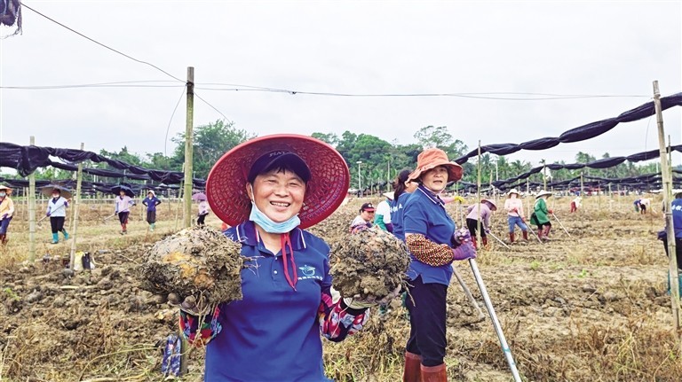 农户采收魔芋喜笑颜开。
