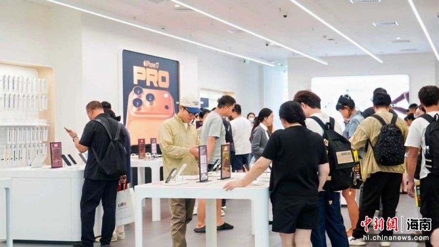 图为部分参与盛典的员工在三亚免税店购买电子产品。(李明月 供图)