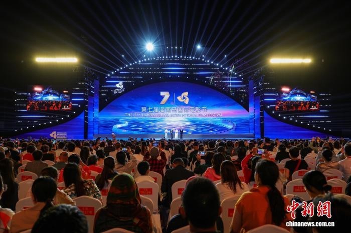 12月3日晚,第七届海南岛国际电影节开幕式在三亚举行。图为开幕式现场。 中新社记者 骆云飞 摄