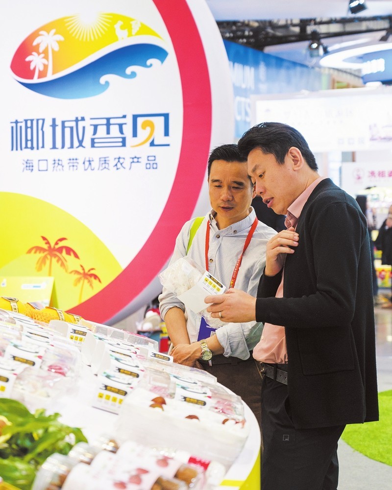 12月4日,参展观众在第28届冬交会海口“椰城香见”品牌馆内参观农产品。本报记者 石中华 摄