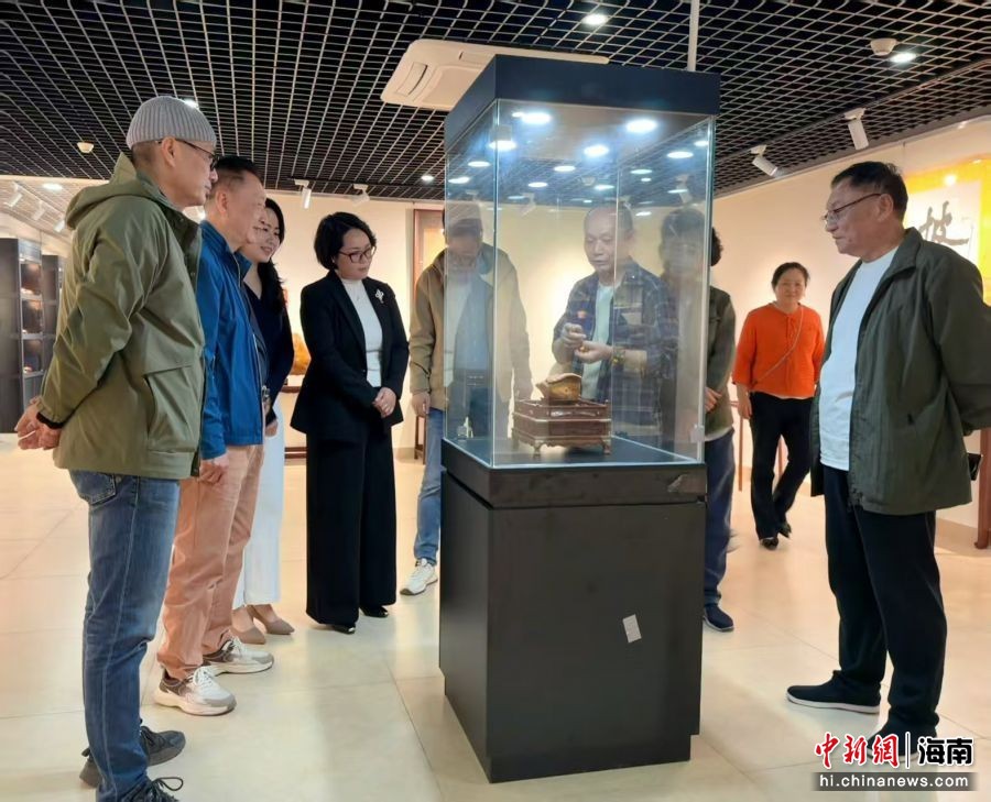 次日,“陶润新丝路·石开天涯风——马国芳陶瓷艺术精品暨海南赏石艺术展”开幕,展期持续至2026年1月15日。展览集中呈现市级非遗代表性传承人马国芳的陶瓷精品与邹世全收藏的海南黄蜡石等赏石作品。展览突出“守正创新”,尝试“紫砂+非遗”跨界融合,将宜兴紫砂工艺与海南黎陶、龙塘泥雕相结合,并融入黎族纹样、历史人物等元素,推动传统工艺向市场化、艺术化转型。观众在赏石作品前,亦可体验“以小见大、神遇乾坤”的审美意境。