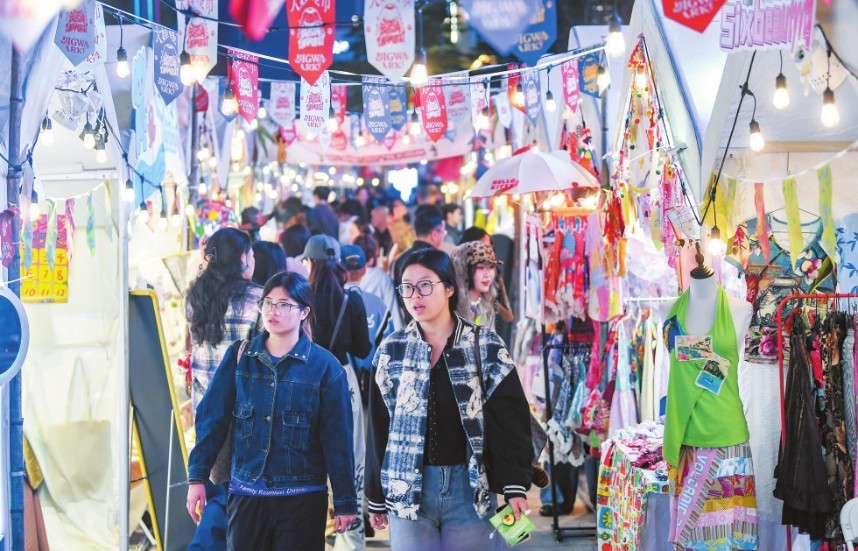 元旦假期,市民游客在琼山区高兴里潮酷文化街区游玩打卡。本报记者 苏弼坤 摄