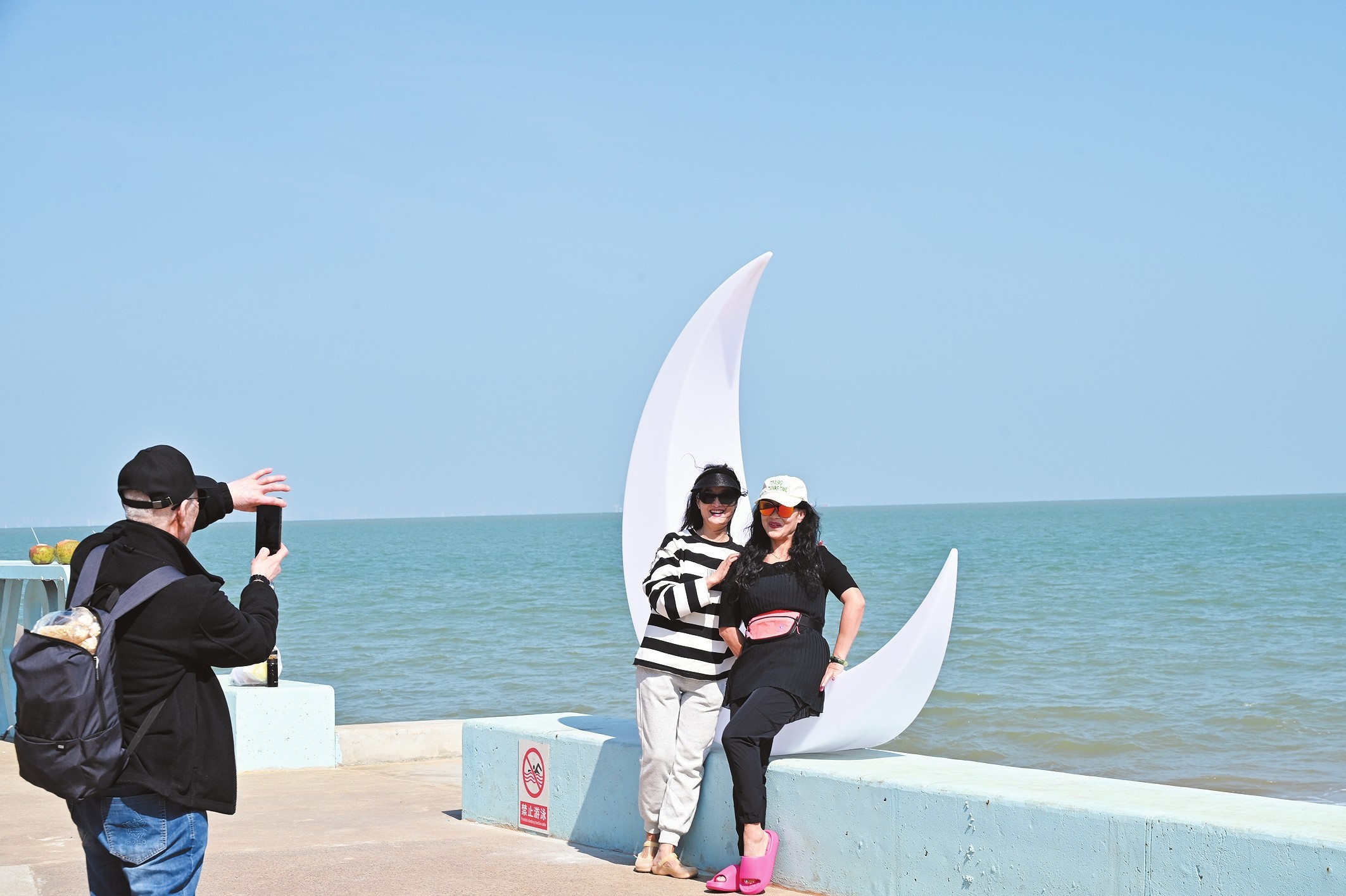 1月9日,游客在海口西海岸日落海岸驿站附近打卡拍照。本报记者 石中华 摄