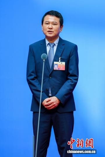 1月28日,政协第八届海南省委员会第四次会议“委员通道”(第二场)在海口举行。图为海南省政协常委、海南省工商联(总商会)副会长、海南传味文昌鸡产业股份有限公司董事长林鹏回答记者提问。中新网记者 骆云飞 摄