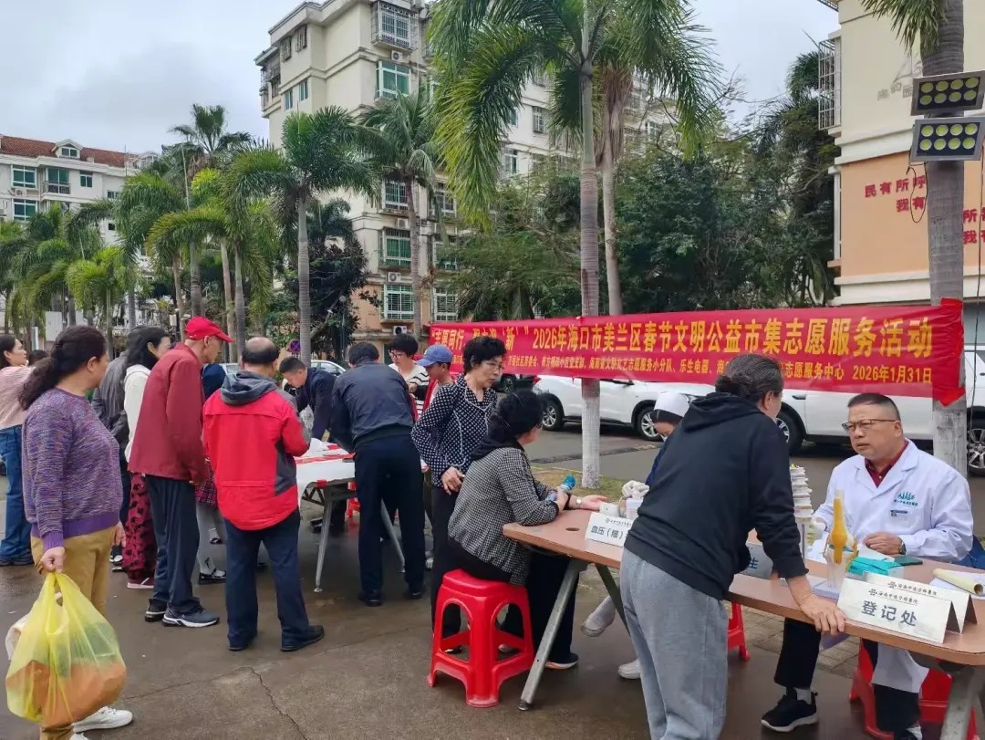 新春将至,年味渐浓。为营造欢乐祥和的春节氛围,铸牢中华民族共同体意识,把暖心服务与新春祝福送到居民家门口。1月31日,由共青团海口市美兰区委员会主办,万福社区居委会、南方明珠小区物业等单位协办,海口市美兰区禾壹志愿服务中心承办的“志愿同行,聚力迎‘新’”2026年海口市美兰区春节文明公益市集志愿服务活动在南方明珠小区温情启幕。多样的公益服务、浓厚的节日氛围,让居民在家门口尽享便民与暖心,提前感受丙午马年的新春喜悦。