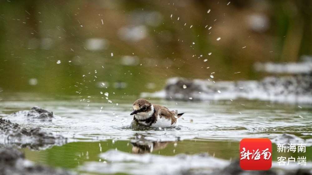 金眶鸻在洗澡。记者 刘孙谋 摄