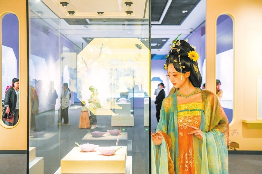 2月4日,在海南省博物馆,汉服爱好者沉浸式徜徉“是时候了!——寻找文物里的二十四节气”展厅。 本报记者 康登淋 摄