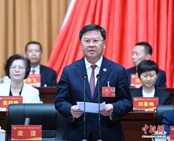 图为新当选的海口市政协主席梁谋主持闭幕会。 (海口市融媒体中心 供图)