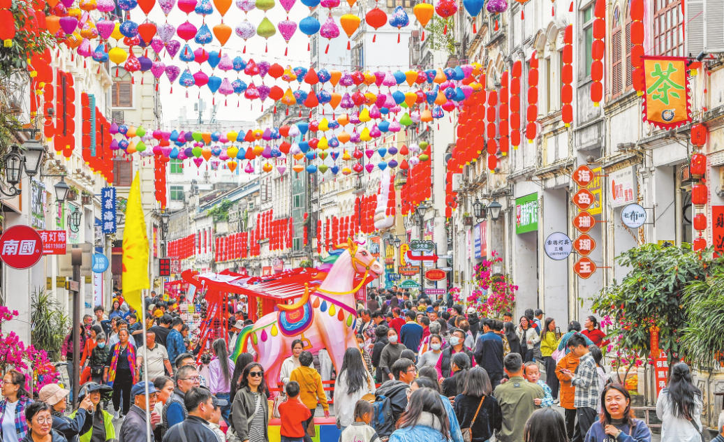 近日,海口骑楼老街人潮涌动,市民游客或打卡拍照,或选购年货。本报记者 康登淋 摄