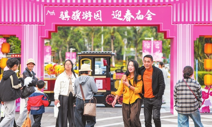 2月10日,海口日月广场的“骐骥游园”迎春庙会吸引了不少市民游客前来参观游玩。