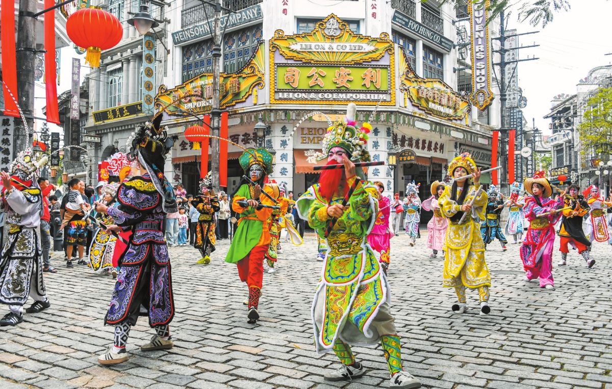 英歌舞在观澜湖华谊冯小刚电影公社热闹上演。本报记者 康登淋 摄